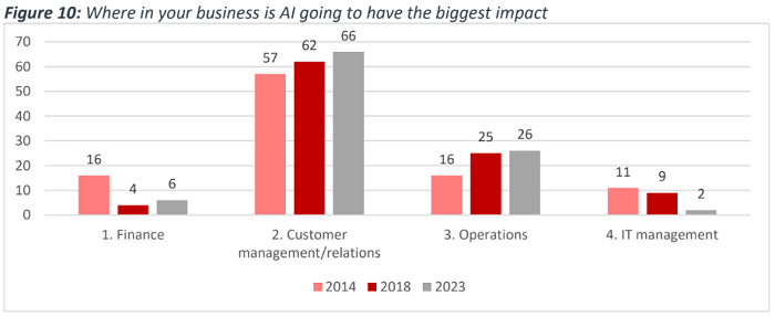 Where in your business do you believe that AI is going to have the biggest impact (figure 10)? The