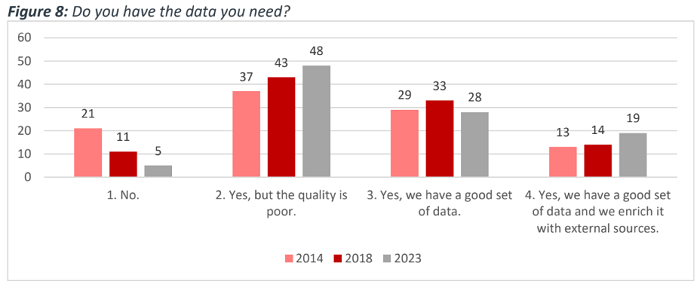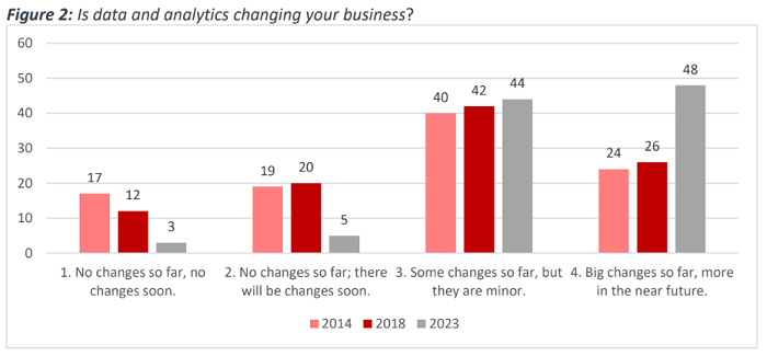 implementing data analytics programs. The percentage of respondents indicating so has increased