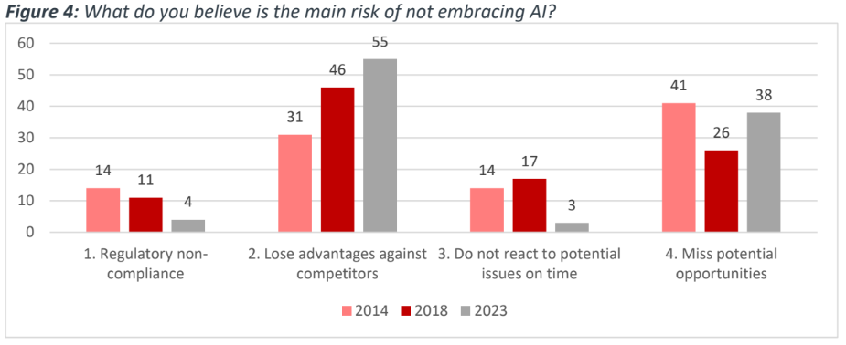 What do you believe is the main risk of not embracing AI (figure 4)? The response options were: