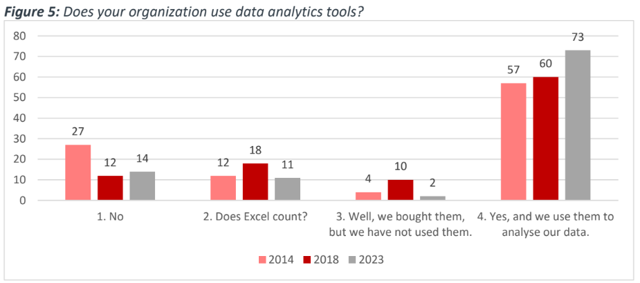 As expected, there has been an increase in the usage of data analytics tools. More than half of the