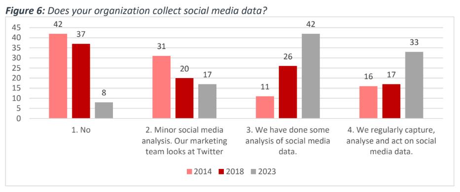 Does your organization collect social media data (e.g., Twitter, LinkedIn, Facebook) (figure 6)? The
