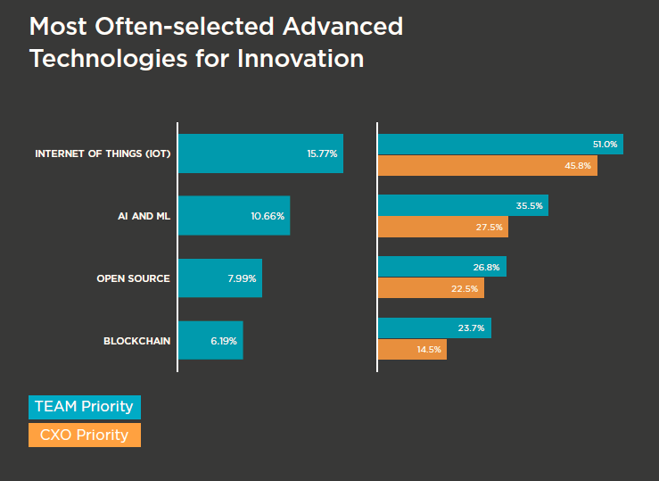 The companies that are further along in their innovation journeys, those identified as digerati and digital experimenters, have already mastered the foundational technologies. AI and ML are becoming a tool that smart companies are using to innovate on the foundation they have already put in place.