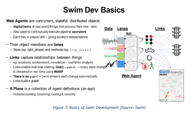 Swim makes it easy to develop applications that statefully process streaming data on-the-fly, using an “analyze, act, and then store” architecture; thus, Swim applications are able to drive operational decisions that demand high resolution, contextual computation (see figure 7).