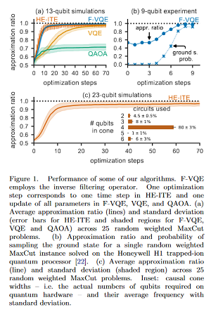 In this paper published on the pre-print repository arXiv, CQ scientists introduce the Filtering Variational Quantum Eigensolver (F-VQE) to make combinatorial optimisation more efficient. Using the Honeywell System Model H1 quantum computer, the new approach outperformed existing “gold standard” algorithms such as the Quantum Approximate Optimisation Algorithm (QAOA) and the original VQE, reaching a good solution 10 to 100 times faster. The paper has been authored by CQ’s research team comprising Michael Lubasch, Ph.D., David Amaro, Ph.D., Carlo Modica, Ph.D., Matthias Rosenkranz, Ph.D., and Marcello Benedetti, Ph.D. The scientists are part of CQ’s Machine Learning and Quantum Algorithms team headed by Dr. Mattia Fiorentini.