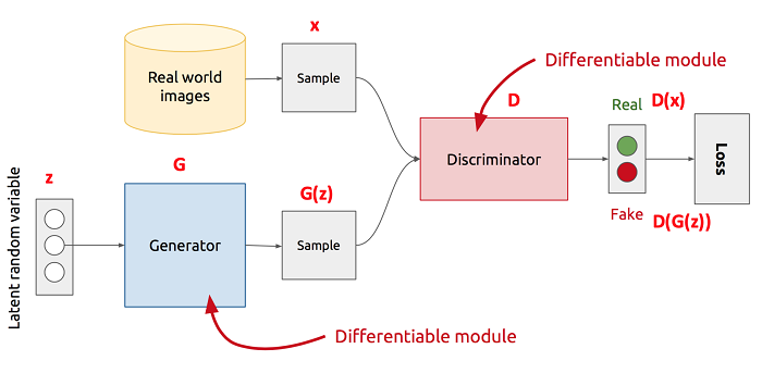 - Discriminator – tries to classify generated images and real images more accurately