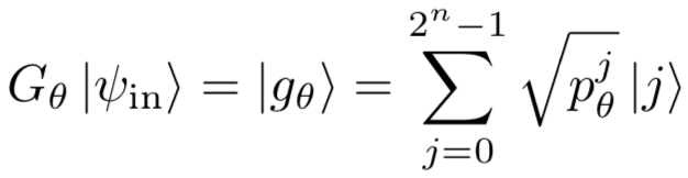 - A parametrized quantum channel, i.e. the quantum generator, is trained to transform a given n-qubit input state |ψin⟩ to an n-qubit output state.