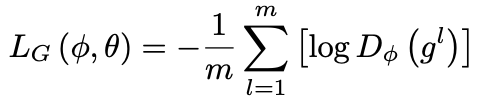 LG (φ, θ) = −Ez∼prior [log (Dφ (Gθ (z)))] =
