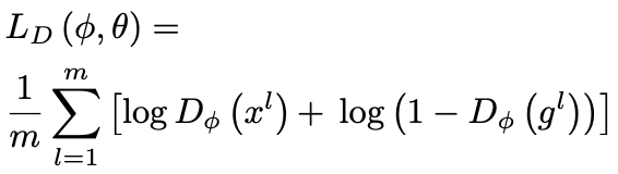 LD (φ, θ) = Ex∼preal [log Dφ (x)] + Ez∼prior [log (1 − Dφ (Gθ (z)))] =