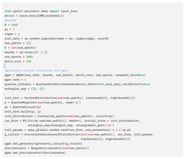 - QISKIT latest Github code – https://github.com/Qiskit/qiskit-aqua/blob/1f2c316c3a1aca1296f45241d14ad8ae5fbe2027/qiskit/aqua/algorithms/distribution_learners/qgan.py