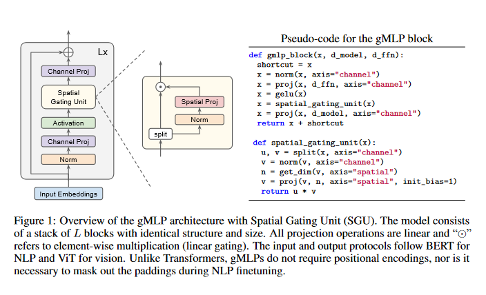 Transformers have become one of the most important architectural innovations in deep learning and have enabled many breakthroughs over the past few years. This paper proposes a simple network architecture, gMLP, based on MLPs with gating, and show that it can perform as well as Transformers in key language and vision applications. The comparisons show that self-attention is not critical for Vision Transformers, as gMLP can achieve the same accuracy. For BERT, the proposed model achieves parity with Transformers on pretraining perplexity and is better on some downstream NLP tasks. On finetuning tasks where gMLP performs worse, making the gMLP model substantially larger can close the gap with Transformers. In general, the experiments show that gMLP can scale as well as Transformers over increased data and compute.