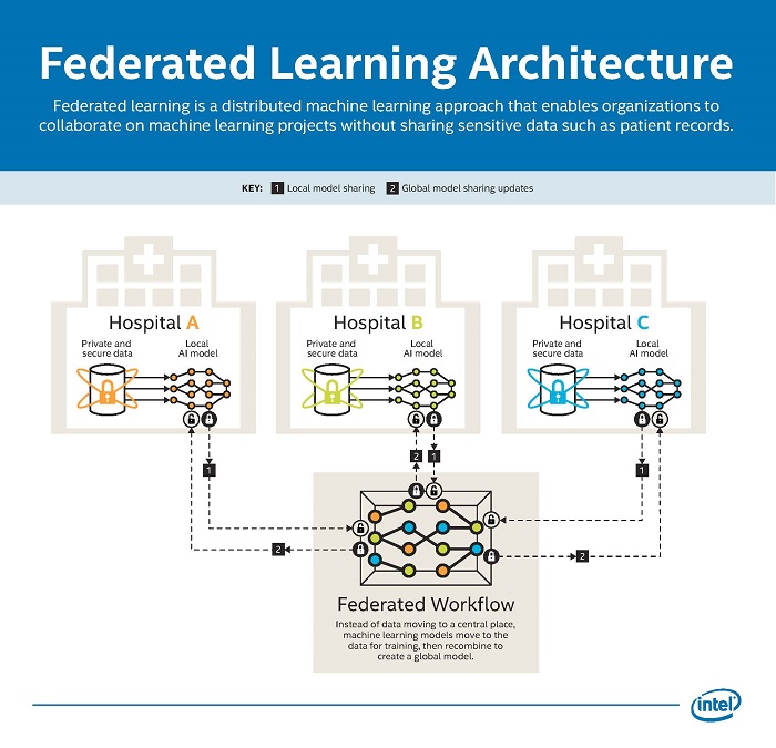 According to the American Brain Tumor Association (ABTA), nearly 80,000 people will be diagnosed with a brain tumor this year, with more than 4,600 of them being children. In order to train and build a model to detect a brain tumor that could aid in early detection and better outcomes, researchers need access to large amounts of relevant medical data. However, it is essential that the data remain private and protected, which is where federated learning with Intel technology comes in. By utilizing this approach, researchers from all partner organizations will be able to work together on building and training an algorithm to detect a brain tumor while protecting sensitive medical data.