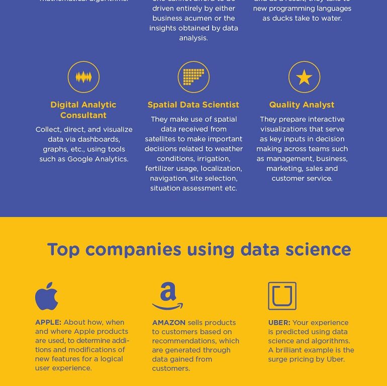 Our friends over at Simplilearn provided us the infographic below which explores the advantages of the a data science career and shows you the various roles available in this career path, along with projected salaries from around the globe.