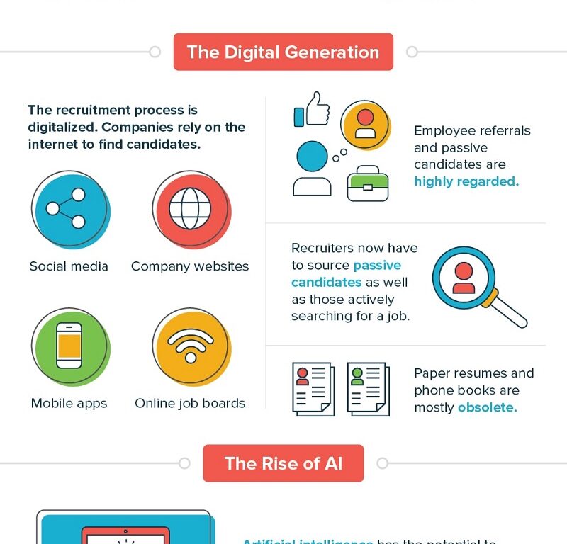 The series of infographics below, developed by our friends over at Yello.co, defines some of the challenges for job seekers and employers, then explains how AI may alleviate or eliminate those challenges. For example, according to an article from the Harvard Business Review, “A vast body of research shows that the hiring process is biased and unfair. Unconscious racism, ageism, and sexism play a big role in who gets hired.” With the help of AI, this bias may be on its way out.