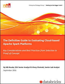 This guide is designed to help you focus on your overall company goals. Do you want to build and manage your own Spark environment or leverage the best possible choice on the market? Find a solution you can use as an effective tool for the real work of getting business value from big data analytics. To learn more download this definitive guide to evaluating cloud-based Apache Spark platforms.