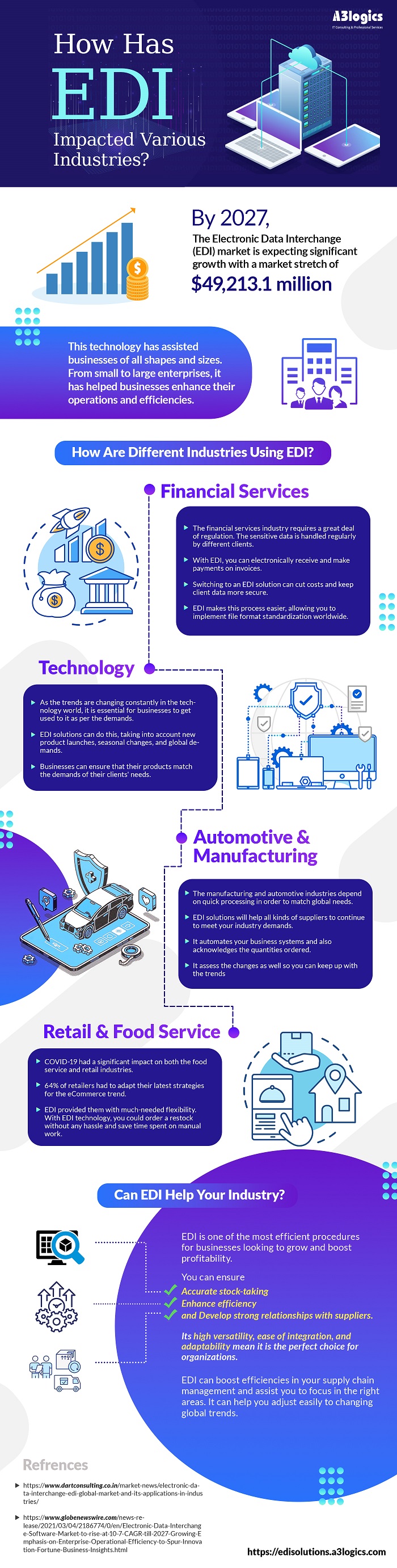 Our friends over at A3logics, a software and app development company based in the USA, recently created an infographic on the topic of “How EDI has impacted different industries.” EDI is trending and is expecting significant future growth.