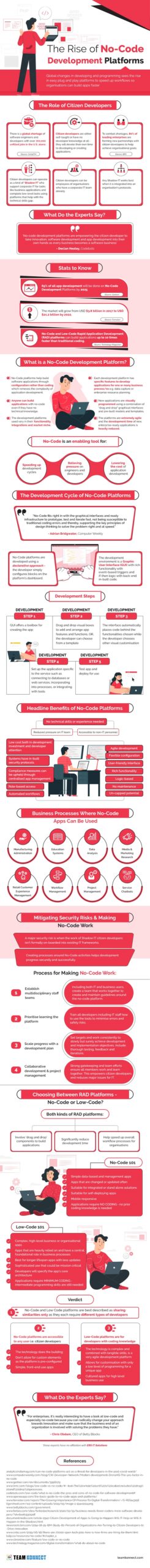 Our friends over at Saas Platform company in Ireland called TeamKonnect have developed new infographic called “The Rise of No-Code Development Platforms” which is provided below. This infographic is a 101 guide to No-Code Development Platforms. Rising in popularity in the last decade, these platforms offer an exciting opportunity for businesses and organizations to develop apps that meet their needs without the engagement of software engineers. Due to the lack of tech knowledge needed, it’s no wonder that Gartner projects that by 2025, 65% of all app development will be done on No-Code Development Platforms!