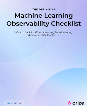 This checklist from our friends over at Arize covers the essential elements to consider when evaluating an ML observability platform. Whether you’re readying an RFP or assessing individual platforms, this buyer’s guide can help with product and technical requirements to consider across a number of areas discussed in this useful resource. The machine learning infrastructure ecosystem is confusing, crowded and complex. With so many companies making competing claims and so much at stake when model performance regresses in production, it can be easy to feel overwhelmed. However, the need for better ML observability tools to monitor, troubleshoot, and explain model decisions is clear.