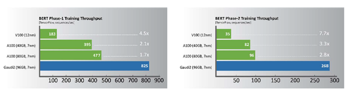 “Compared with the A100 GPU, implemented in the same process node and roughly the same die size, Gaudi2 delivers clear leadership training performance as demonstrated with apples-to-apples comparison on key workloads,” said Eitan Medina, chief operating officer at Habana Labs. “This deep learning acceleration architecture is fundamentally more efficient and backed with a strong roadmap.”