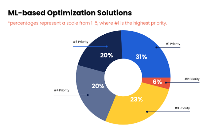 Despite the clear advantage of using ML for cloud cost optimization, many organizations have yet to adopt this technology, or even cloud cost optimization solutions in general. Battery Ventures’ State of Cloud Spending Report shows that while 95% of CXOs consider cloud cost optimization a priority, only 55% use ML-based third-party solutions. Despite that, 31% of CXOs rank ML optimization as a #1 feature priority when it comes to selecting third party cloud cost optimization solutions.
